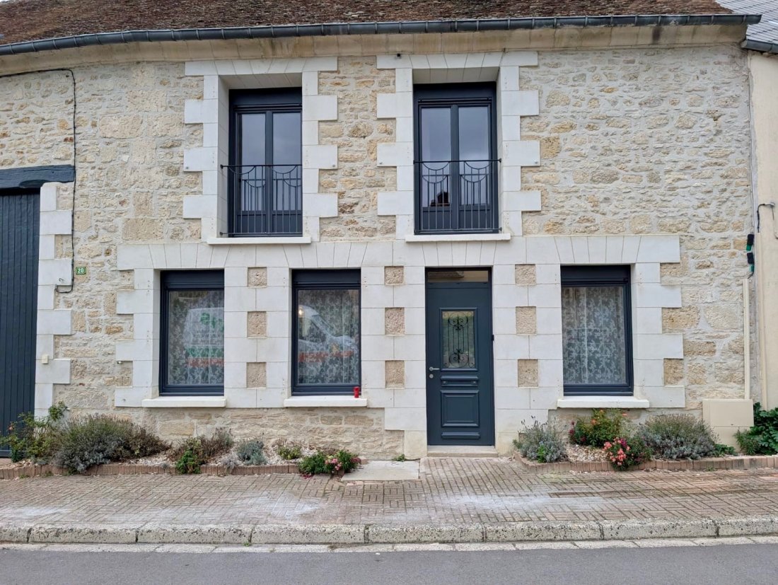 Photo présentant plusieurs réalisations de fenêtres sur mesure par Aisne Devis : modèles en bois, PVC et aluminium, posées sur des façades rénovées.